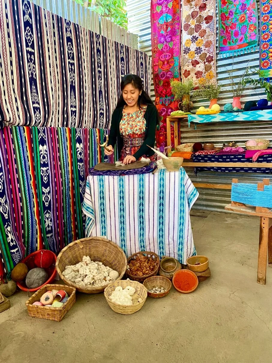 Next door is a female weaving coooperative where disenfranchised women of the Tz’utujil Maya produce incredibly beautiful, and hugely labour intensive products, with the same belt-weaving process we witnessed in the village of Zinacantan, near San Cristóbal de las Casas. The textiles are truly exquisite but we cannot afford the money or luggage space to purchase them so make do with fridge magnets, happy that any profit from that goes to them rather than the massed tourist stalls at the jetty.