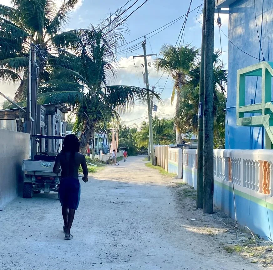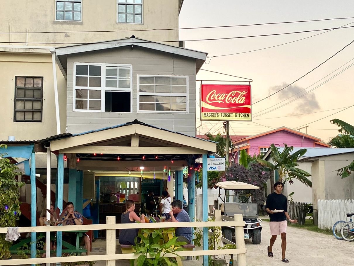 We leave them to it and head back to our room to properly unpack, picking our way between the golf carts and bicycles that weave their way around the trails that count as roads on the island. No cars are allowed and the motto of Caye Caulker is “go slow”, so we start to relax into the Caribbean vibe and enjoy the palm trees and tropical evening air.