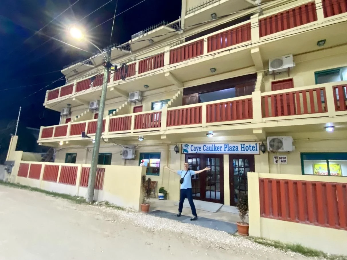 Once the chaos of collecting our various bags at the little hut by the disembarkation point is done, we strap our rucksacks back on and walk a couple of sandy blocks to the Caye Caulker Plaza Hotel, our base for the next three nights. It’s basic but clean, our room has a little balcony to hang wet clothes out to dry and reception has free tea and coffee in the mornings, and very smiley staff.