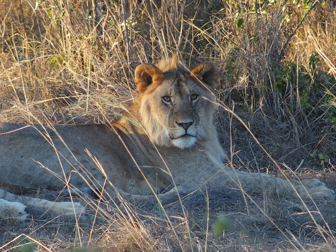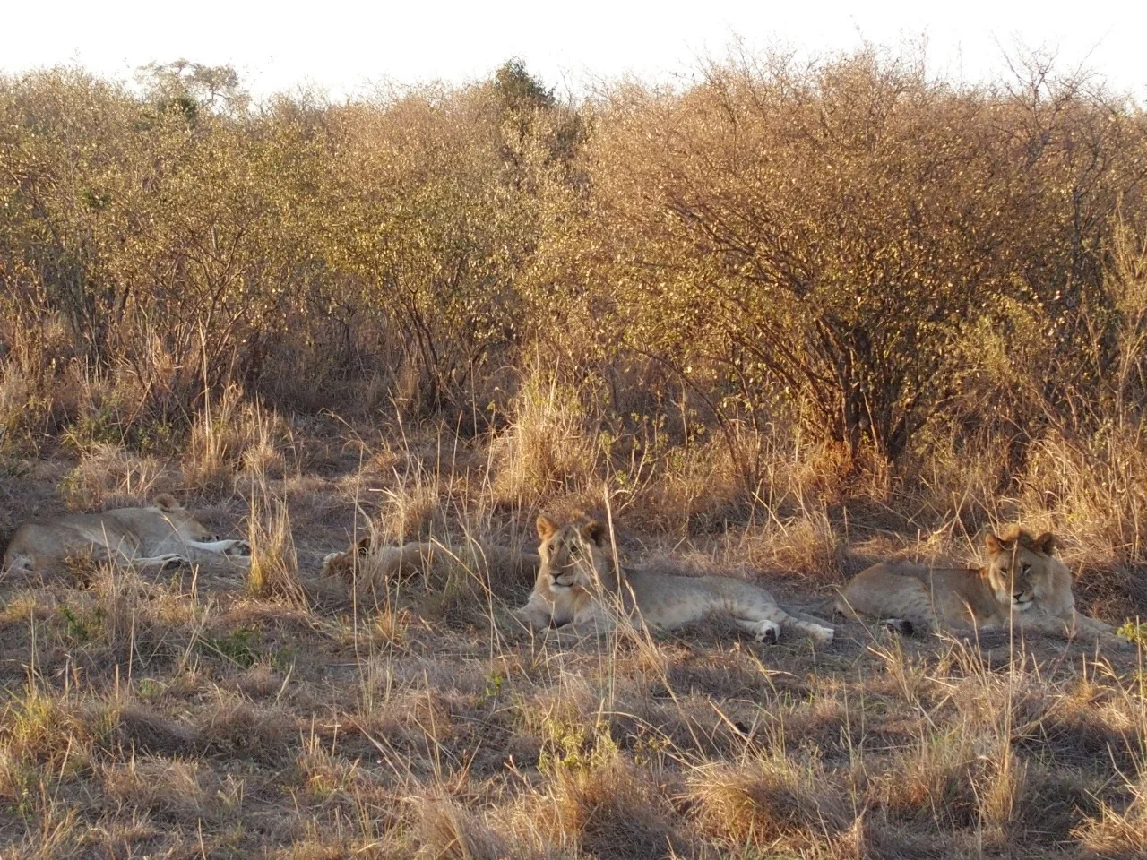 Suddenly the leopard appears ahead of us running for cover and we get our shot. It's a fleeting glimpse but our new-found luck holds as out of the blue we spot a pride of four lionesses basking in the early evening sunshine, their golden colours matching the straw-like grasses and burnished light, magical and lazy, unbothered by our presence.