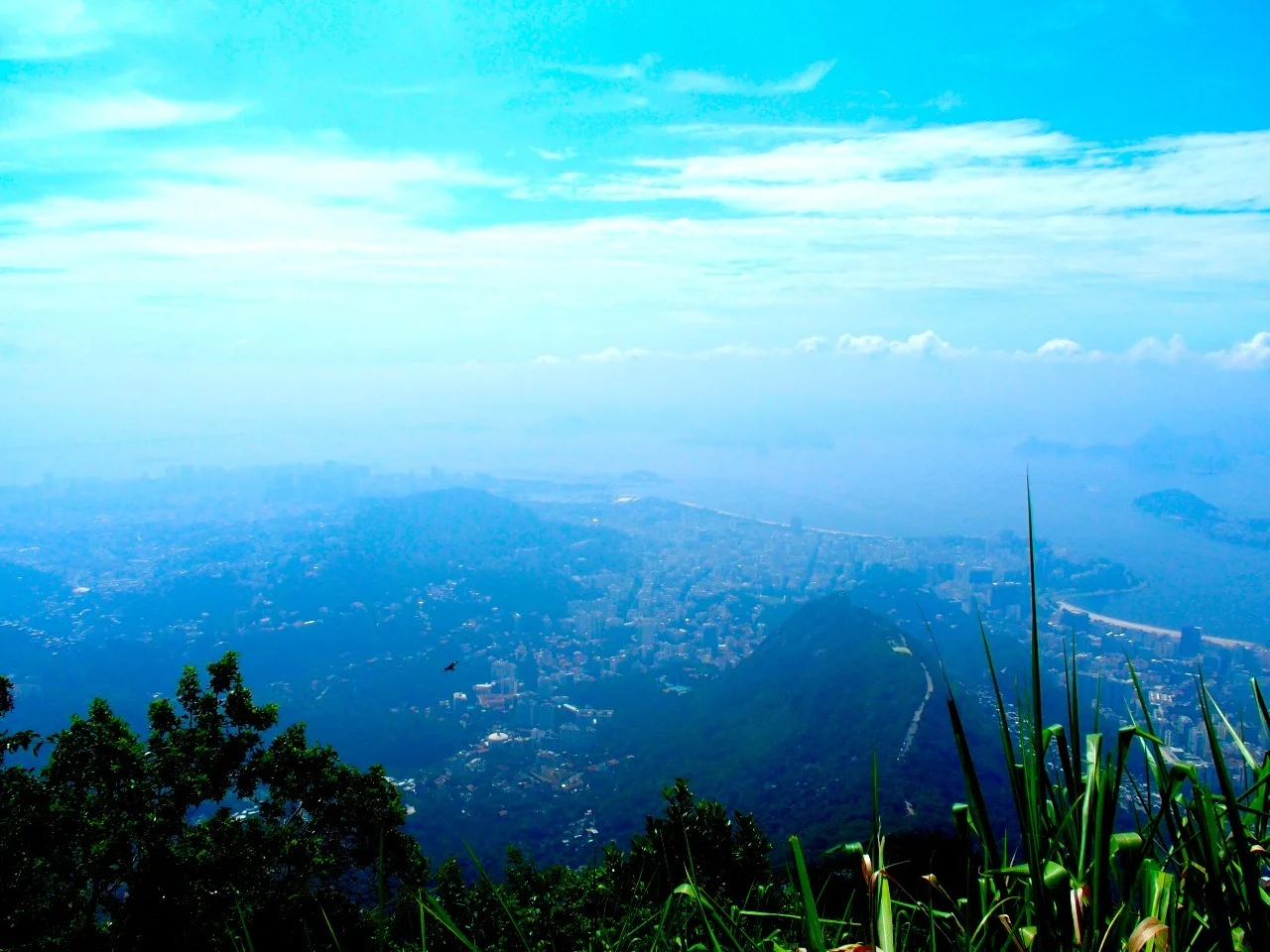 While we're blessed again with blue skies, unfortunately like yesterday on Sugar Loaf, there's a haze in the air that renders more distant landscapes as blurry shapes on the horizon, rather than the crystal sharp islands I was lucky enough to see last time round. And on that visit I was accompanied by two of Kerrang magazine's finest - Simon Young and the photographer Ashley Maile, a dear friend, now sadly gone too soon, whose long hair and beard ensured he was photographed constantly while we were on Corcovado by Japanese tourists, convinced he was playing the role of Christ for their scenic benefit. His drily laconic Canadian dismissals of their entreaties for shots with him ring in my ears. He's very sadly missed.