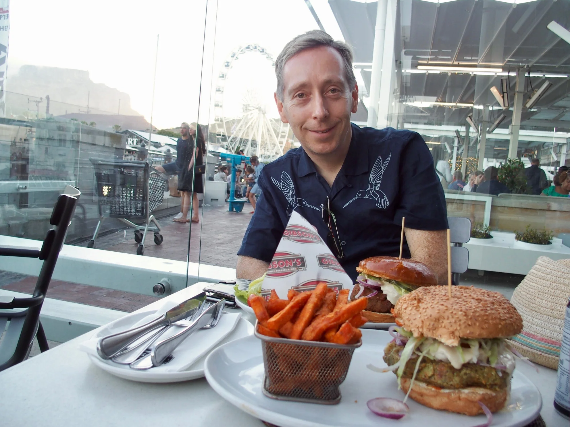 As we leave, huge clouds of mist are rolling down Table Mountain, like a dry ice machine at an 80’s disco. We walk past the Nelson Mandela Gateway ferry terminal to Robben Island and the nearby famous Clock Tower, then stroll through the Waterfront, souvenir shopping and soaking up the atmosphere along with thousands of other tourists.
