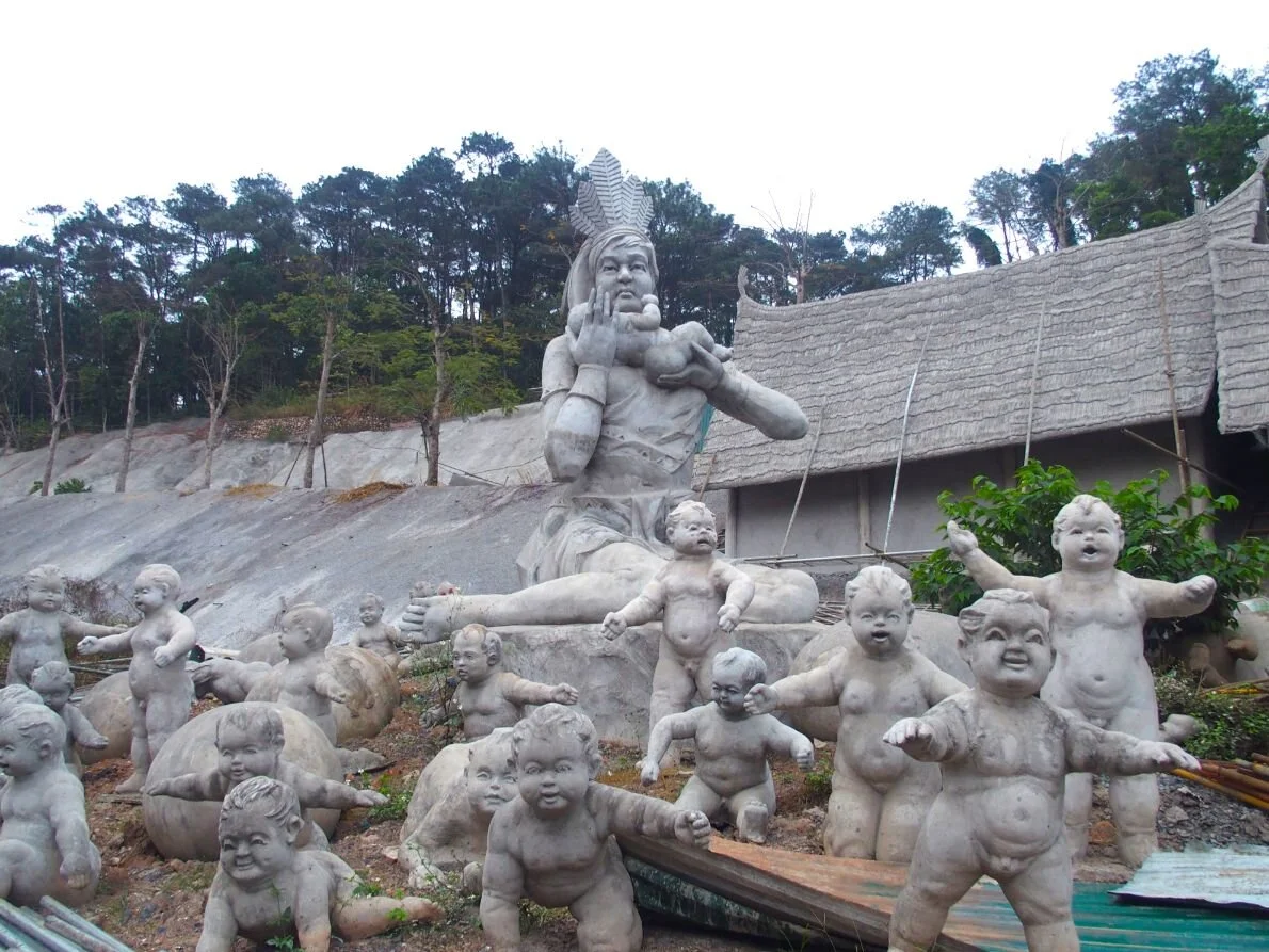 To add to the slightly bleak atmosphere, across the road from our hotel is a half-built theme park, and I sneak inside gazing in bemusement at vast sculptures being constructed of dinosaurs, elephants, buffalos, Native American tribal warriors, bizarre crying babies and King Kong. In the flat overcast light pre-dusk it’s all rather sinister.